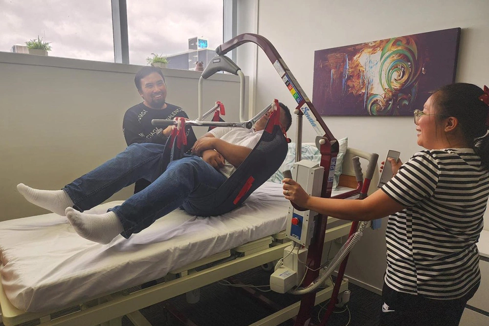 Học viên thực hành di chuyển bệnh nhân với máy Hoist. Ảnh: Kalandra Education